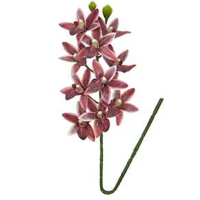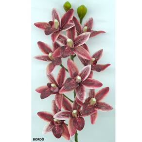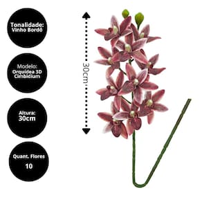 Haste de Orquídea 3D Cymbidium Silicone Premium – Vinho Bordô 30cm com 10 Flores