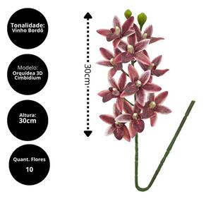 Haste de Orquídea 3D Cymbidium Silicone Premium – Vinho Bordô 30cm com 10 Flores