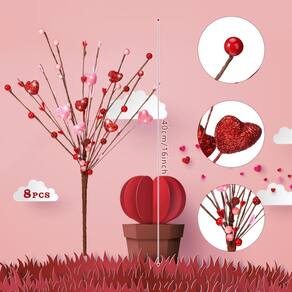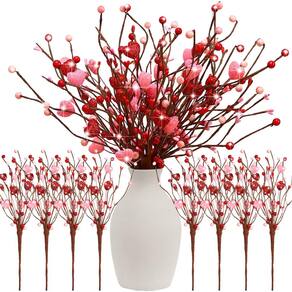 Características: Qualidade confiável: As hastes de enchimento de vaso de coração e frutas vermelhas do Dia dos Namorados são feitas de espuma, macia e prática, quantidade suficiente para atender às necessidades de uso diário e substituição. Decoração da casa: Você pode dar hastes artificiais de frutas silvestres como presentes para seus amigos, elas também podem ser aplicadas como ornamentos em casa, colocadas no quarto e na sala de estar, elas lhe darão um bom humor. Especificações: Material: espuma Cor: como mostrado na imagem. Tamanho: 41 cm de altura A embalagem inclui: 8 hastes de flores sintéticas. Observações: Medição manual, considere pequenos erros no tamanho. A cor pode existir uma pequena diferença devido a diferentes telas. - Quantidade adequada: você receberá 8 hastes artificiais de frutas vermelhas com glitter para o Dia dos Namorados, o suficiente para diferentes usos e substituições; você também pode compartilhá-los com sua família ou entes queridos para trazer um pouco de diversão e romance para suas vidas - Fácil de combinar: a decoração de bagas dos namorados tem um design inovador com frutas em forma de coração e pequenas frutas redondas nos galhos; Eles têm uma aparência vívida e adorável e são fáceis de combinar com as decorações em sua casa, então quando você puder colocá-los em um vaso, eles atrairão rapidamente a atenção de alguém - Material de qualidade: coração e bagas de hastes de flores falsas são feitos de espuma, que é leve e forte, conveniente e prático, e aderem bem ao caule embrulhado, proporcionando uma boa experiência - Tamanho adequado: cada haste de decoração de mesa tem cerca de 40 cm de altura e é adequada para uma sala de estar, quarto ou outro lugar, trará um clima feliz e melhorará a atmosfera festiva em casa - Adicione uma atmosfera romântica: as hastes falsas de baga dos namorados são adequadas para sua sala de estar, quarto, mesa de jantar, cozinha, sala de leitura, sala de aula, escritório, dormitório, loja e assim por diante; bonito e atraente, usá-los como decorações melhorará a atmosfera do Dia dos Namorados