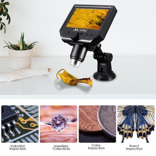 Pixel: HD 3 milhões 600 mil pixelsDisplay: 4,3 polegadas HD LED display. Ampliação: 1-600 vezes o sistema de amplificação contínuaSupport: corpo principal do microscópio eletrônico de 1-64GB