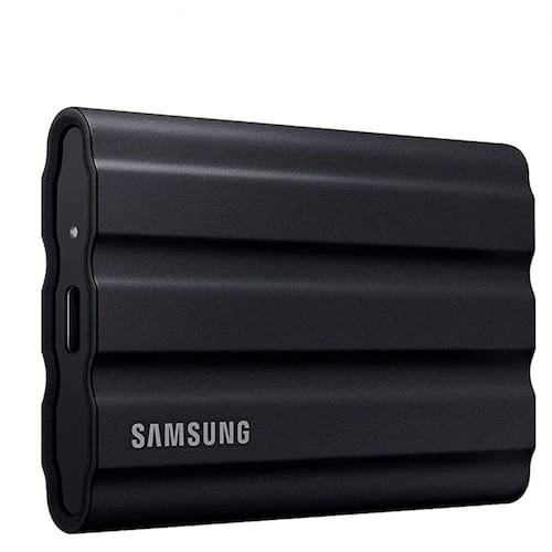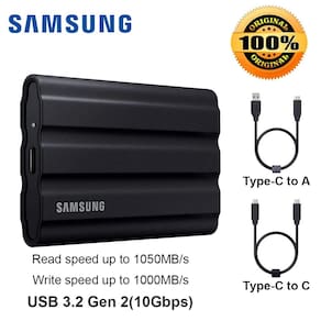 SSD externo portátil com capacidade de 2TB, interface USB 3.2 Gen 1 (5 Gb/s) ou USB 3.2 Gen 2 (10 Gbps), taxa de transferência de dados de até 1050 MB/s (leitura/gravação sequencial), criptografia de hardware AES de 256 bits, design resistente com revestimento de borracha, gancho integrado, proteção térmica dinâmica. Compatível com PC, dispositivos Android e consoles de jogos.Capacidade