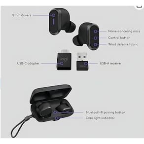 Dados Técnicos: Conectividade Tipos de conexões: Bluetooth, receptor USB-A com adaptador USB-C Alcance sem fio: Até 30 metros (campo aberto) Dispositivos emparelhados: Duas conexões ativas e até seis conexões armazenadas Bateria Tempo de fala/áudio Tempo de fala: Até 5h (ANC ligado); até 6h (ANC desligado) Tempo de escuta: Até 6h (ANC ligado); até 10h (ANC desligado) Carregamento - 2h30 para carregamento completo dos fones de ouvido - 2h30 para carregamento completo do estojo - 5 min de carregamento rápido = até 1h de tempo de escuta - Carregamento Qi Wireless2 ou cabo de carregamento USB-C para USB-A (incluído) Áudio Tipo de microfone: Matriz de microfones duplos MEMS omnidirecional com formação de feixe e um microfone interno ANC (cancelamento de ruído ativo): Alterne facilmente entre o ANC híbrido e o modo de Transparência para eliminar os ruídos de fundo do ambiente ou ouvir as pessoas, tráfego e outros sons externos Qualidade de som: Os drivers grandes de 12 mm oferecem graves completos, e o tecido ajuda a reduzir os ruídos de vento Proteção acústica: Certificação EN 50332 Fácil de usar Controle: Atender/encerrar/recusar chamadas, pausar/reproduzir músicas, anterior/próxima música, ligar/desligar ANC/modo de Transparência, Áudio ativado/desativado, aumentar/diminuir volume, iniciar o Microsoft Teams Alertas de áudio Alertas de voz para a duração da bateria, modo sem áudio, ANC/modo de Transparência, status de energia e conexão Conforto para o dia inteiro: Três tamanhos de pontas de gel (P, M e G) estão disponíveis para um ajuste personalizado Fácil de gerenciar: Monitore e gerencie seus dispositivos pessoais de colaboração em uma única plataforma com o Logitech Sync. Oferece suporte para implantações em toda a empresa em escala e simplifica tarefas como atualizações de firmware e recursos.