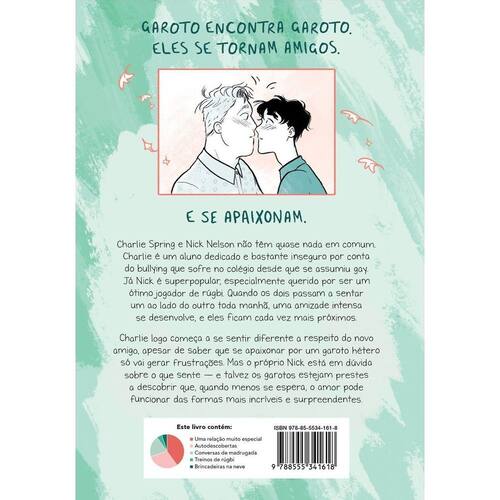 O primeiro volume da adorada série em quadrinhos finalmente chega ao Brasil. Charlie Spring e Nick Nelson não têm quase nada em comum. Charlie é um aluno dedicado e bastante inseguro por conta do bullying que sofre no colégio desde que se assumiu gay. Já Nick é superpopular, especialmente querido por ser um ótimo jogador de rúgbi. Quando os dois passam a sentar um ao lado do outro toda manhã, uma amizade intensa se desenvolve, e eles ficam cada vez mais próximos. Charlie logo começa a se sentir diferente a respeito do novo amigo, apesar de saber que se apaixonar por um garoto hétero só vai gerar frustrações. Mas o próprio Nick está em dúvida sobre o que sente — e talvez os garotos estejam prestes a descobrir que, quando menos se espera, o amor pode funcionar das formas mais incríveis e surpreendentes. Essa edição contém: Capa dura Ilustrações em duas cores Fichas sobre cada personagem Uma prévia do próximo volume Em breve Heartstopper vai se tornar uma série da Netflix!