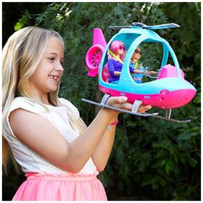 O helicóptero da Barbie inspira a imaginação para decolar e explorar o mundo durante as brincadeiras Os rotores realmente giram basta empurrar para começar uma nova aventura O helicóptero de brinquedo é fácil de identificar como sendo da boneca Barbie com um corpo rosa e azul brilhante e detalhes prateados. Dois assentos com cinto de segurança permitem que os amigos voem juntos para compartilhar a experiência bonecos vendidos separadamente. Inspirados por Barbie Dreamhouse Adventures, os fãs podem espiar a vida cotidiana da Barbie enquanto ela embarca em emocionantes aventuras com sua família e amigos ou inventam suas próprias histórias enquanto exploram o mundo É um ótimo presente para jovens exploradores e fãs da série, porque quando uma menina brinca com a Barbie, ela imagina tudo o que pode se tornar Marca: Não Informado
