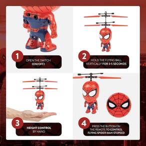 - COORDENAÇÃO MUNDIAL DE MÃO / OLHOS - Basta ligar e iniciar para começar, segurando sua mão sob o helicóptero UFO Homem-Aranha o manterá pairando no ar.