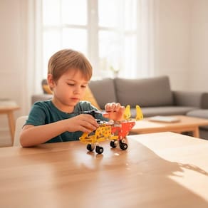 robusto e detalhado, peça por peça. A cada montagem, a criança