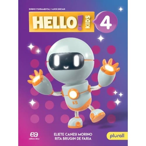 A nova edição do HELLO, KIDS! desenvolve as quatro habilidades oralidade, leitura, escrita e fala, além da diversidade cultural e habilidades socioemocionais. A abordagem e os temas são contemporâneos para incentivar a participação dos alunos com jogos, brincadeiras, atividades com abordagem CLIL e STEAM, projetos interdisciplinares e uma variedade de atividades digitais. O robô Kiddie5, convida os alunos a dizer chants para aprimorar a pronúncia. Acompanha um reader para o aluno ler e ouvir as histórias. Áudios disponíveis no Plurall ou no Spotify. Marca: ATICA - DIDATICOS **