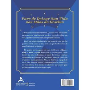 Pare de Deixar Sua Vida nas Mãos do Destino O destino é um escritor terrível. Quando você confia nele para escrever sua história, perde o controle sobre sua vida e perde o interesse em sua própria história. Herói em Missão ajuda a criar um plano de vida que lhe permite viver todos os dias com um profundo senso de significado e de propósito. Há quatro personagens em cada história: a vítima, o vilão, o herói e o guia. Esses quatro personagens vivem dentro de nós. Se fizermos o papel de vítima, estamos condenados ao fracasso. Se fizermos o papel de vilão, não criaremos laços genuínos. Mas, se fizermos o papel de herói ou o de guia, nossas vidas prosperarão. O difícil é ter consciência de si mesmo o suficiente para saber qual personagem estamos interpretando.