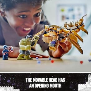 Heróis Marvel Vingadores vs. Leviatã Lego 76290 O conjunto colecionável de Super-herói LEGO Marvel Vingadores vs. Leviatã 76290 recria a cena da batalha final de Marvel: Os Vingadores da Marvel Studios. Este modelo LEGO Marvel construível para crianças maiores de 7 anos apresenta um elenco icônico de personagens, além de uma série de autênticos recursos e funções. O conjunto inclui 4 minifiguras: o Capitão América com seu escudo, a Viúva Negra com um disparador de pinos, o Loki com sua capa e capacete e um guerreiro Chitauri com uma pistola de laser, além de uma figura grande do Hulk. A Leviatã para construir conta com 6 nadadeiras móveis, uma boca que abre, uma cabeça que vira para os lados e 2 disparadores de pinos. A Leviatã inclui expositores transparentes que permite que as minifiguras voem durante as brincadeiras e tornam a exposição ainda mais impressionante. Para mais diversão digital, o aplicativo LEGO Builder intuitivo permite que crianças ampliem, girem modelos em 3D, salvem conjuntos e acompanhem o progresso delas à medida que constroem.