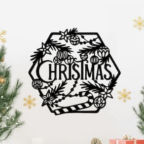 Hexágono De Natal 32cmx30cm - Cria Arte Laser prata -