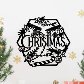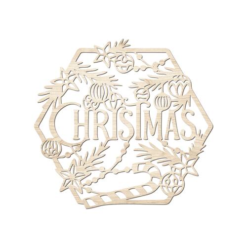 Hexágono De Natal 32cmx30cm - Cria Arte Laser madeira clara -