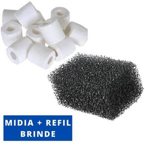 Kit filtro aquatank hf-200 220v + refil + midia biologica