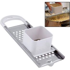 Hicook Steel Inoxidável Spaetzle Maker Spaetzle Noodle Dumpling Maker com Safety PusherSpaetzle é um macarrão especializado de origem alemã, austríaca e húngara. Spaetzle é uma receita deliciosa e fácil de preparar que causará uma impressão vencedora todas as vezes. Adicione espinafre finamente picado à massa para spaetzle de espinafre, ou queijo ralado para spaetzle de queijo. Você também pode adicionar manteiga, canela e açúcar à massa para uma sobremesa fabulosa. Se você não fez spaetzle antes deste Fabricante de Macarrão Spaetzle de aço inoxidável é uma ótima maneira de começar. Hicook Spaetzle Maker é tão fácil de usar. Basta formar a massa e colocar uma peça gerenciável no funil. Coloque a base do Fabricante de Spaetzle em uma superfície levemente enfarinhada para evitar que os bolinhos grudem. Deslize o funil em um movimento para cima e para baixo ao longo da superfície de corte. Jogue o Spaetzle em um pote de água fervente salgada alguns de cada vez e cozinhe até terminar. * Spaetzle, bolinhos alemães tradicionais, pode ser em pratos salgados ou doces, ou como um substituto maravilhoso para massas, arroz ou batatas. * Maneira rápida e limpa de fazer spaetzle (bolinhos alemães) * Encha caixa de massa com massa de bolinho * Movimento deslizante para frente e para trás sobre pote cria pacote de spaetzle perfeitamente uniforme Contém:1 Spaetzle MakerMeasures: 12,75" x 4,25" x 2,5" / 32,5cm x 11cm x 6cm Cuidado e Limpeza: Lavagem de mão Apenas