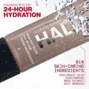 Hidratante colorido multifuncional Smashbox Halo Healthy Glow SPF 25 | Cobertura leve a média | Ácido hialurônico, sem óleo e antiumidade, 1,4 fl. oz., leve e médio — FÓRMULA LEVE: acabamento úmido de aparência natural com cobertura respirável de leve a média.