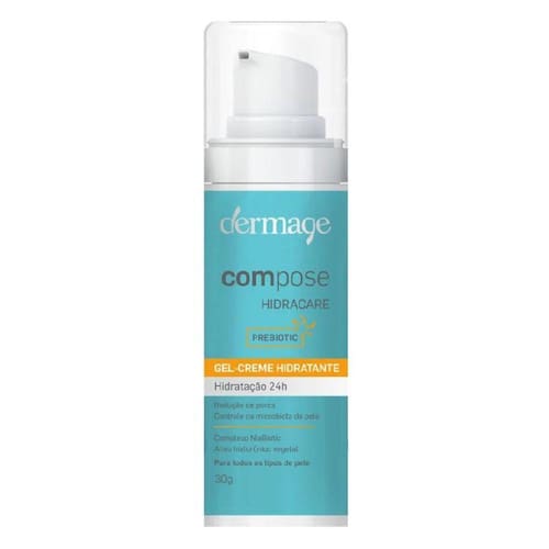 Hidratante Compose Hidracare Dermage - 30g Hidratante facial para todos os tipos de pele Compose Hidracare garante a hidratação por até 24h com rápida absorção e textura gel-creme. Com ativo hialurônico e exclusivo complexo NiaBiotic Niacinamida e Prebióticos , promove o reequilíbrio da microflora cutânea e a redução de poros dilatados.