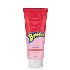 Loção Hidratante Desodorante Corporal Cuide-se Bem Bubbaloo é um delicioso hidratante corporal que deixa sua pele macia, sedosa e perfumada com cheirinho inconfundível de Bubbaloo Morango. Com 96% de ingredientes naturais, o Hidratante Desodorante Bubbaloo entrega:
