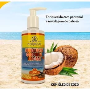 Benefícios Hidratação intensa: Combate o ressecamento da pele após a exposição ao Sol, mantendo-a suave e revitalizada.Regeneração da pele: Promove a regeneração das áreas sensibilizadas, deixando sua pele mais saudável e renovada.Ingredientes naturais: Óleo de coco e aloe vera oferecem propriedades calmantes e hidratantes, ideais para peles expostas ao Sol.Fácil aplicação: Sua textura suave permite uma aplicação uniforme, promovendo conforto imediato. Modo de UsoApós o banho, aplique o Hidratante Corporal Pós Sol uniformemente sobre o corpo, massageando suavemente, principalmente nas áreas mais expostas ao Sol. Para melhores resultados, utilize diariamente.