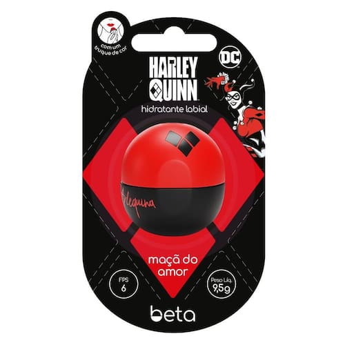 Hidratante Labial Beta Arlequina Maçã do Amor - Cor Vermelho 9,5g O hidratante labial Beta Arlequina é mais uma parceria entre a FreeBrands e a Warner Bros. A famosa personagem dos quadrinhos e do cinema agora chega para surpreender os fãs de Beta com aroma delirante de maçã do amor. Marca: Não Informado