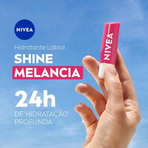 NIVEA Hidratante Labial Melancia Shine é um hidratante labial com um delicado brilho rosado que hidrata os lábios durante 24 horas.