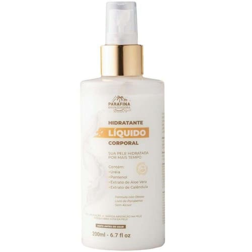 O mais novo queridinho no Brasil, o Hidratante Líquido Corporal, é uma extensão de linha da marca Parafina Bronzeadora Gold. A aplicação do Hidratante Líquido Corporal é em spray, uma novidade no mercado brasileiro.Buscamos proporcionar para você uma aplicação mais rápida, de fácil absorção e que reequilibra o PH natural da pele, auxiliando na restauração da barreira protetora da pele por mais tempo.Você não precisa ficar mais esperando aqueles minutos intermináveis para o hidratante secar na pele após o banho. Com o Hidratante Líquido Corporal você ficará impressionada com sua rapidez, bem como com a alta hidratação proporcionada por ele. Você perceberá a textura leve e a rápida absorção da sua pele, proporcionando uma ótima espalhabilidade no corpo, tornando assim seu momento de cuidado com a pele mais rápido e prazeroso. Sua formulação é indicada para todos os tipos de pele, formulação não oleosa, sem álcool e parabenos.