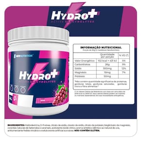 Maltodextrina, D-frutose, citrato de sódio, cloreto de sódio, citrato de potássio, bisglicinato de magnésio, corantes naturais de beterraba e caramelo, acidulante ácido cítrico, aroma sintético idêntico ao natural de uva, antiumectante fosfato tricálcico e edulcorante artificial sucralose.