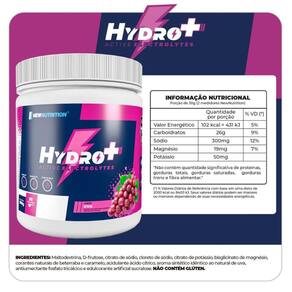 Maltodextrina, D-frutose, citrato de sódio, cloreto de sódio, citrato de potássio, bisglicinato de magnésio, corantes naturais de beterraba e caramelo, acidulante ácido cítrico, aroma sintético idêntico ao natural de uva, antiumectante fosfato tricálcico e edulcorante artificial sucralose.