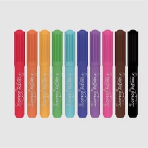 Para deixar a experiência ainda mais divertida e colorida, a caixa vem com 10 cores vibrantes: vermelho, laranja, amarelo, verde, azul claro, azul marinho, roxo, rosa, marrom e preto.