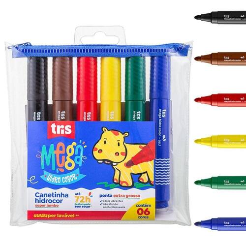 HIDROCOR MEGA HIDRO COLOR - SUPER JUMBO - 6 CORES - TRIS