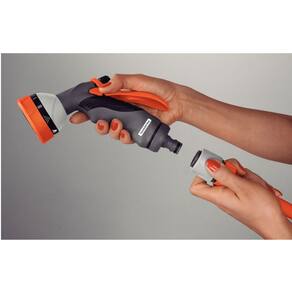 - A hidropistola é conectada em mangueiras de 1/2", 5/8" e 3/4" através de sistema de engate rápido.