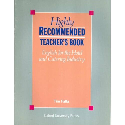 Highly Recommended is specifically designed for young trainees working in hotels and restaurants. The twenty-eight units cover a range of important topics such as how to take bookings, methods of cooking, dealing with enquiries and complaints,and giving directions. Each unit has two listening sections with accompanying activities.mar boxes within the units and a grammar reference section.through improvisations around the business themes.
