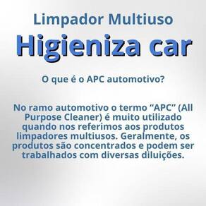 Descrição: No ramo automotivo o termo APC All Purpose Cleaner é muito utilizado quando nos referimos aos produtos limpadores multiusos. Geralmente, os produtos são concentrados e podem ser trabalhados com diversas diluições. Isso varia do tipo de sujidade que irá enfrentar. Em questão de composição, não há um padrão, cada marca fabrica seu produto com um conjunto de ingredientes para esse tipo de limpeza. Por isso, utilizar um bom APC no ramo automotivo é indispensável em seu kit de produtos. Os APCs são indicados para diversas superfícies e materiais, por exemplo, vidros, borrachas, plásticos, estofados, metais... Este tipo de limpador pode ser um desinfetante, desengraxante, desengordurante, detergente ou até mesmo solvente, ou uma combinação de algumas dessas ações, ou todas em um único produto. A compra e concordar com as condições descritas acima.
