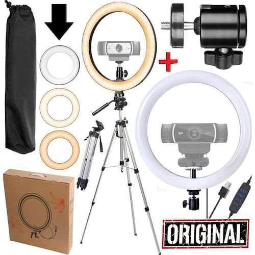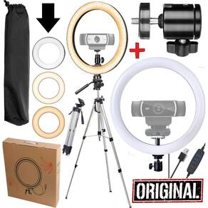 Hing light completo luz led luminária tripé suporte webcam flash estúdio filmagem gravação vídeoconferência escritório Garantia total de nossos produtos,pois são testados antes do envio. ring light led 10 polegadas + tripé com ajuste de altura até 1,30 metros luz com 3 modos de cores e 10 níveis de intensidade suporte ball head 360º possibilita ajuste em vários angulos do dispositivo de gravação acompanha suporte para webcam Itens inclusos: 1x ring light led 26cm 1x ball head 360º 1x suporte para celular 1x tripé telescópico 1x bolsa para tripé Iluminação de led para estúdio, home estúdio, ring light 10 polegadas, com adaptador ball head 360º que permite ajuste de angulação do dispositivo de gravação. Iluminação regulável 3 cores e 10 níveis de intensidade de luz lâmpada anel + controle de iluminação + ball head 360 graus. Iluminador ring light 10 polegadas, desenvolvido para maquiadores, fotógrafos, cinegrafistas e etc, que buscam uma ótima maneira de iluminar com perfeição. Com ajuste de ângulo com suporte articulado. Com controle de temperatura e da cor da lâmpada. Ligado através de cabo usb Você pode utilizar um adaptador de tomada de celular para ligar ou conectar no usb do computador ou outro equipamento que forneça 5v usb. O cabo usb deverá estar sempre ligado para funcionar. Características: - alimentação: usb - voltagem: bivolt - tipos de luz: quente, fria e mesclada. - temperatura da cor: 3500k / 6500k - dimensões aproximadas do led axlxp : 26x26x1,5cm - tamanho aproximado do cabo: 1,5m - cabo com controle de liga/desliga, tipo de cor e intensidade de luz. Informações técnicas: - 10 níveis de intensidade de luz - 03 tipos de tonalidade de luz quente, fria e mesclada Tripé telescópio universal - muito prático e útil com acabamento excelente e bolsa para transporte. - fabricado em alumínio; travas para fixação da posição - sistema de rosca compatível com câmeras, suportes para celular, iluminadores de led etc - pés em borracha e ajuste de terreno para melhor estabilidade - altura mínima: 45 cm - altura máxima: 1,30 mts com o ring light - base pode ficar na posição horizontal ou vertical Importante: Kit acompanha uma unidade de cada item Não acompanha webcam ou outros dispositivos Postamos em até 24 horas úteis.