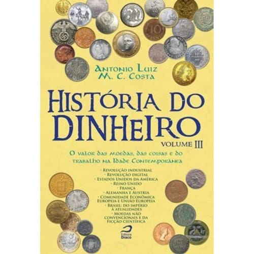 “?A série História do Dinheiro contempla importantes estudos que ajudam os pesquisadores, principalmente os numismatas, a entenderem qual era o poder de compra das moedas em suas épocas, permitindo traçar um paralelo com a atualidade.?” Bruno H. Miniuchi Pellizzari - Diretor da Sociedade Numismática Brasileira. Quanto valia a fortuna de Brás Cubas? Quanto a Alemanha teve de pagar de indenização com o Tratado de Versalhes? Como se deram as mudanças de moeda no Brasil? Como os EUA impuseram sua hegemonia financeira no final da II Guerra Mundial? Para entender como surgiu o dinheiro e como ele evoluiu através da história, a Editora Draco traz mais uma formidável pesquisa de Antonio Luiz M. C. Costa, autor de ficção especulativa e ex-editor de política internacional da CartaCapital. História do dinheiro – volume III: O valor das moedas, das coisas e do trabalho na Idade Contemporânea é uma obra que explora as complexas relações que transformam a economia através dos tempos com tabelas detalhadas de preços de produtos, serviços, multas para infrações, taxas de câmbio entre diversas moedas e muito mais. Com um texto que não exige preparo prévio, mas com informações e reflexões que mesmo os pesquisadores e estudantes de economia podem aproveitar, agora vai ser mais fácil conhecer o misterioso universo monetário. Neste terceiro volume, vivencie o impacto da colonização e independência no Brasil e das duas Guerras Mundiais que moldaram a Idade Contemporânea e entenda as mudanças políticas e sociais que formaram o mundo ocidental. Ler e escrever sobre finanças – reais ou imaginárias – agora será cada vez mais prazeroso. Revolução industrial • Revolução digital • Estados Unidos da América • Reino Unido • França • Alemanha e Áustria • Comunidade Econômica Europeia e União Europeia • Brasil: do império à atualidades • Moedas não convencionais e da Ficção científica.