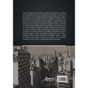 A obra é composta por uma série de artigos que promovem um diálogo entre pesquisadores, que se encontram em diferentes momentos de suas carreiras, em uma dinâmica altamente enriquecedora para todos os participantes e para o público leitor. O livro explora as diversas articulações entre a concretude mais visível das cidades e sua dimensão imaginária, por meio das quais os processos sociais são vividos e interpretados pelos próprios sujeitos, pensando as cidades como lugares de práticas, representações, costumes e tradições, muitas vezes, con?itantes. Promove uma re?exão sobre os processos de construção das condições materiais de vida, das culturas e do cotidiano, tematizando as lutas de diferentes grupos e sujeitos organizados ou não pelo direito à cidade e à cidadania. Dialoga com as experiências de múltiplos sujeitos – mulheres, homens, jovens, velhos, crianças, negros, índios – nas mais diversas condições de vida, de luta e em diferentes situações históricas.