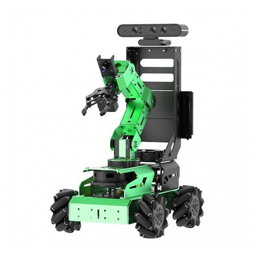 A estrutura do JetAuto Pro é construída em liga de alumínio, com trilhos contínuos de nylon reforçado e motores com codificadores Hall de alta precisão, garantindo desempenho confiável e durabilidade. Ideal para laboratórios de robótica, cursos de engenharia, makers e entusiastas de IA, este kit oferece uma base sólida para explorar e desenvolver soluções inovadoras em robótica móvel.