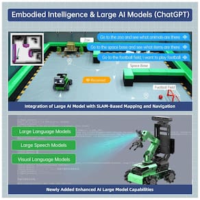 Compatível com o Robot Operating System (ROS2), o JetAuto Pro suporta algoritmos avançados como gmapping, hector, karto e cartographer, permitindo navegação precisa, planejamento de trajetórias (TEB) e evasão dinâmica de obstáculos. Além disso, é possível treinar modelos de aprendizado profundo utilizando frameworks como MediaPipe e YOLO, expandindo as capacidades do robô para reconhecimento de objetos e interação somatossensorial.