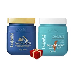 Hobety Máscara Banho de Ouro 750g + Máscara Mar Morto 750g Banho de ouro máscara 750g Desenvolvida exclusivamente para cabelos que necessitam de reparação capilar. Com ácido hialurônico que auxilia o preenchimento das cerdas e forma uma hidroproteção capilar, diminuindo sua perda de água; o colágeno hidrolisado, que ajuda a realinhar os fios, promovendo maior flexibilidade, dando mais força e vitalidade; a creatina e a glicina que nutrem e hidratam os fios. Sua ação restauradora auxilia a corrigir danos causados por outros produtos, compensando a necessidade de proteínas e nutrientes nas cutículas fragilizadas.