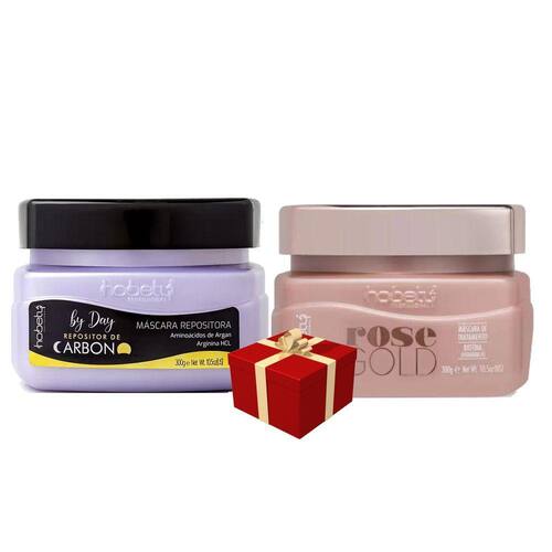 Hobety Máscara Rose Gold 300g + Repositor de Carbono 300g Repositor de carbono máscara by day 300g É continuidade da reposição de carbono aos cabelos que tiveram desgaste natural ou pelo uso inadequado de tratamentos químicos, danos térmicos, ou ainda pela ação do sol, calor e cloro, auxiliando a fibra capilar no combate da sua porosidade, potencializando a hidratação, mantendo-as saudáveis, brilhantes e macias por mais tempo. PRINCIPAIS ATIVOS: Arginina e óleo de argan
