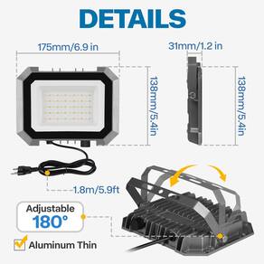 Leddictive Pacote com 2 holofotes de LED de 50 W para ambientes externos, 3CCT 3000/4000/6000K 5000LM Luz de trabalho externa selecionável com plugue de 1,8 m, holofote LED impermeável IP65 para garagem, quintal, gramado, jardim - Projetores de LED para ambientes externos com 3 CCT reguláveis 3000K (branco quente), 4000K (natural), 6000K (branco frio). O interruptor de temperatura de cor no corpo do holofote pode ser ajustado para escolher diferentes temperaturas de cor de acordo com as necessidades de diferentes locais. - Alumínio fundido: a parte traseira é projetada com um radiador de aletas longas e um invólucro de alumínio fundido de alta qualidade. O design de dissipação de calor dupla permite que os holofotes tenham excelente capacidade de dissipação de calor e a vida útil pode ser de até 50.000 horas. - ?À prova d'água IP65?A holofote portátil para ambientes externos é selada com uma grande quantidade de cola à prova d'água, e cada luz foi testada para impermeabilização para garantir que atenda aos padrões à prova d'água. Permite que a lâmpada funcione normalmente em chuva e neve, alta temperatura ou ambiente frio. Tenha cuidado para não expor o plugue à água da chuva. - Fácil instalação: fixe o suporte de metal ajustável com os parafusos incluídos e você pode montar a luz de segurança LED ao ar livre na parede, teto ou em qualquer lugar que você quiser. Todo o processo de instalação leva apenas de 3 a 5 minutos. - Economize energia? Em comparação com as lâmpadas halógenas tradicionais, os holofotes de 100 W não apenas têm uma vida útil mais longa e maior brilho, mas também economizam até 85% de energia. Ao mesmo tempo em que oferece uma melhor experiência de usuário, também pode economizar contas de luz. - ?Garantia de 2 anos? Nossos holofotes externos fornecem serviço de garantia pós-venda de 2 anos, se você tiver alguma dúvida, , trataremos disso para você dentro de 24 horas.