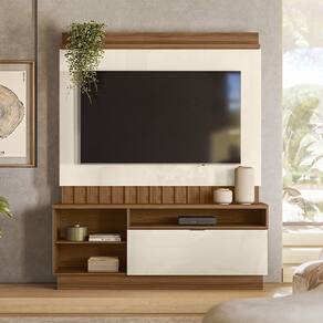 Características: Estrutura em MDP Pintura UV 01 Porta basculante com articulador Painel ripado Possui prateleiras com amplo espaço Puxador em alumínio Ideal para TVs de até 60 polegadas Suporta até 45kg