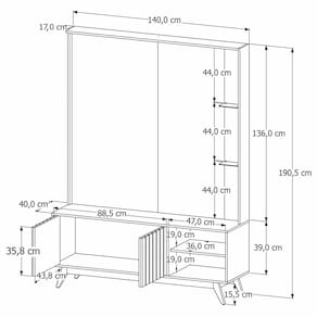 Espaço para TV: 136 cm x 140 cm;
