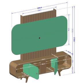 Material da estrutura: Base, Tampo, Laterais, Divisórias, Portas e Painéis frontais de MDP 15mm; Painéis ripados compostos por painel traseiro de MDP de 15mm e ripas de MDF 12mm e pés em madeira maciça;