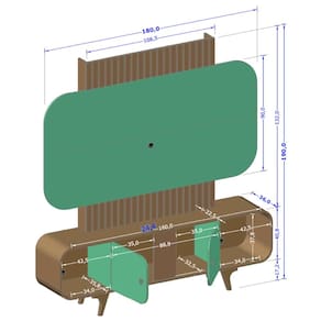 Material da estrutura: Base, Tampo, Laterais, Divisórias, Portas e Painéis frontais de MDP 15mm; Painéis ripados compostos por painel traseiro de MDP de 15mm e ripas de MDF 12mm e pés em madeira maciça;