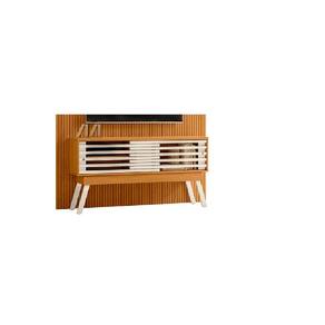 A Composição Frizz New Premium combina estilo moderno e praticidade, sendo fabricada com estrutura em MDP e MDF de 12, 15 e 25mm, revestida com pintura UV de alta qualidade, que proporciona resistência e elegância. Suas dimensões incluem um rack de 1,500 x 0,675 x 0,390m e um painel de 1,790 x 2,445 x 0,185m, ambos projetados para acomodar TVs de até 65 polegadas, com entradas específicas de 1,500 x 0,385m no rack e 1,790 x 1,200m no painel. O painel apresenta um sofisticado frisado em MDF com design em baixo relevo, enquanto o rack conta com duas portas deslizantes frisadas que se sobrepõem, duas prateleiras e puxadores funcionais que garantem organização e praticidade. Os pés retrô adicionam um toque de charme ao conjunto, conferindo estabilidade e um design atraente. O sistema de montagem Girofix facilita a instalação, tornando a Composição Milo uma escolha inteligente para quem deseja um ambiente moderno, funcional e elegante.