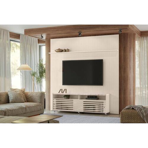 "A Composição Frizz New Prestige eleva a sofisticação e funcionalidade da sua sala, com um design moderno e prático, sendo fabricada com uma estrutura que combina MDP e MDF, com chapas de 12, 15, 25 e 40mm, garantindo resistência e durabilidade, revestida com pintura UV de alta qualidade, que proporciona um acabamento elegante, suas dimensões são de 1,820 x 0,630 x 0,390m para o rack e 2,380 x 2,445 x 0,185m para o painel, apresentando um painel em MDF frisado com design em baixo relevo, portas deslizantes frisadas que se sobrepõem suavemente, conferindo modernidade ao ambiente, e uma prateleira para organização adicional, os puxadores cromados, fabricados em poliestireno, trazem elegância e resistência, enquanto os seis rodízios de silicone facilitam a movimentação sem danificar o piso, o produto é compatível com TVs de até 75 polegadas, com entrada para TV no rack de 1,820 x 0,385m e no painel de 2,380 x 1,310m, além disso, conta com o sistema de montagem Girofix, que assegura praticidade e segurança na instalação, transformando sua sala em um ambiente acolhedor e sofisticado.