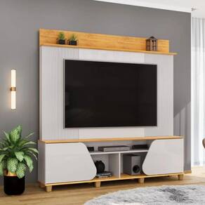 Com o passa-fios, a organizacao dos cabos fica pratica e discreta, mantendo seu espaco sempre harmonioso, o painel do Home Henry e composto por ripados canelados modernos que adicionam um toque decorativo, emoldurando o espaco generoso que comporta TVs de ate 70. A prateleira superior extensa e perfeita para exibir suas decoracoes favoritas, tornando o ambiente mais aconchegante e sofisticado.