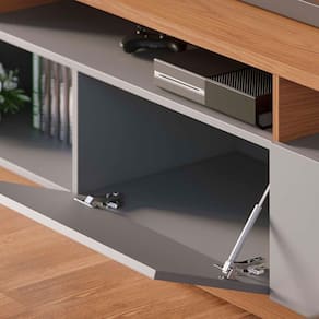 Com a união de elementos do design minimalista e contemporâneo, o Home Theater Humaitá é atemporal e ideal para quem quer a experiência de ter um verdadeiro cinema em casa. Seu painel suporta TVs de até 65 polegadas e possui detalhes ripados decorativos em sua lateral, iluminados por uma canaleta de led, proporcionando uma ambientação sofisticada e aconchegante para a sala. Os nichos e as duas portas basculantes com pistão a gás, são ideais para armazenagem e organização de aparelhos eletrônicos e objetos decorativos.