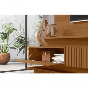 Este painel para TV combina o aconchego do Jequitiba Ripado com um design moderno, perfeito para ambientes que buscam equilíbrio entre funcionalidade e sofisticação.