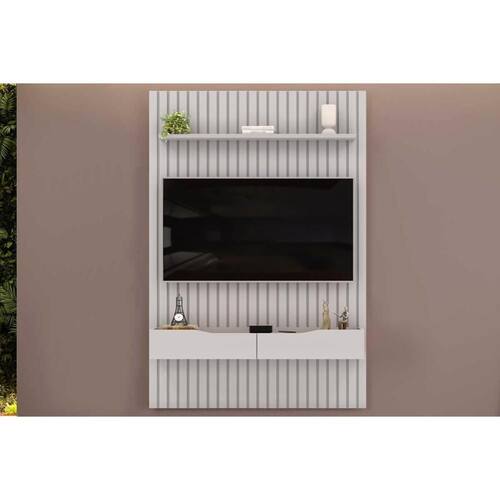 Rack Bancada c/ Painel p/ TV até 55 Pol Pratic Ripado 2 Gavetas 143x240cm Bali - DJ Móveis