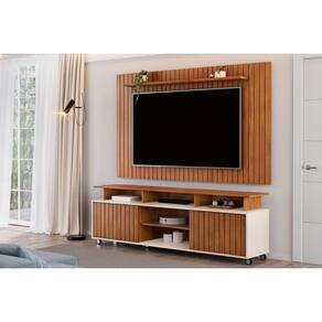 RACK BANCADA P/ TV ATÉ 70 POLEGADAS OLIMPIC RIPADO C/ NICHOS E RODIZIOS 180X60CM FREIJÓ/OFF WHITE - DJ MÓVEIS